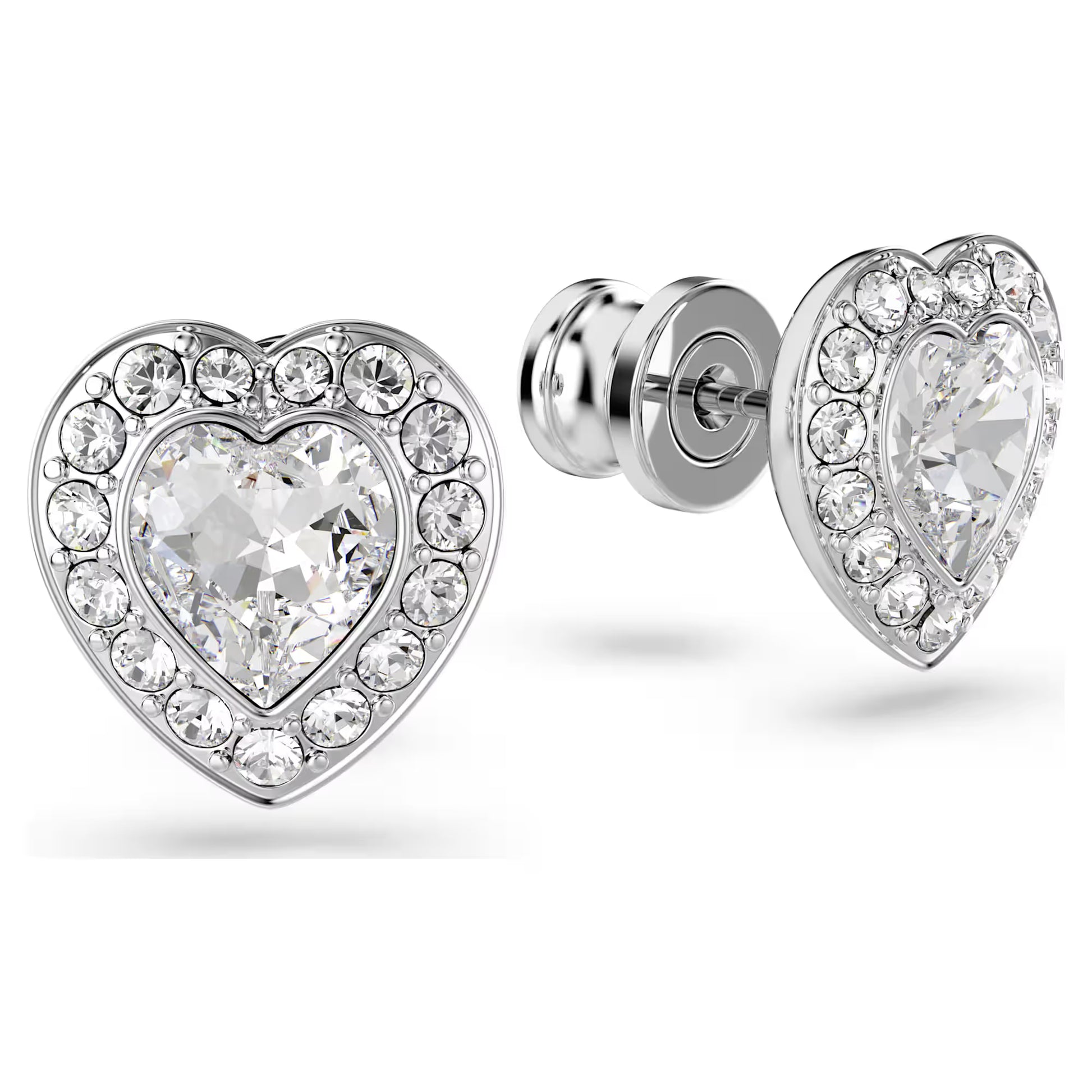 Bu neşeli Swarovski düğme küpeyle iki kalp bir araya geliyor. Her bir rodyum kaplama parça, ışıltılı berrak pavé bir haleyle çevrelenmiş kalp şeklinde bir kristalle tamamlanıyor. Işıltılı bir aşk hediyesi için uyumlu bir kolyeyle birlikte kullanın.